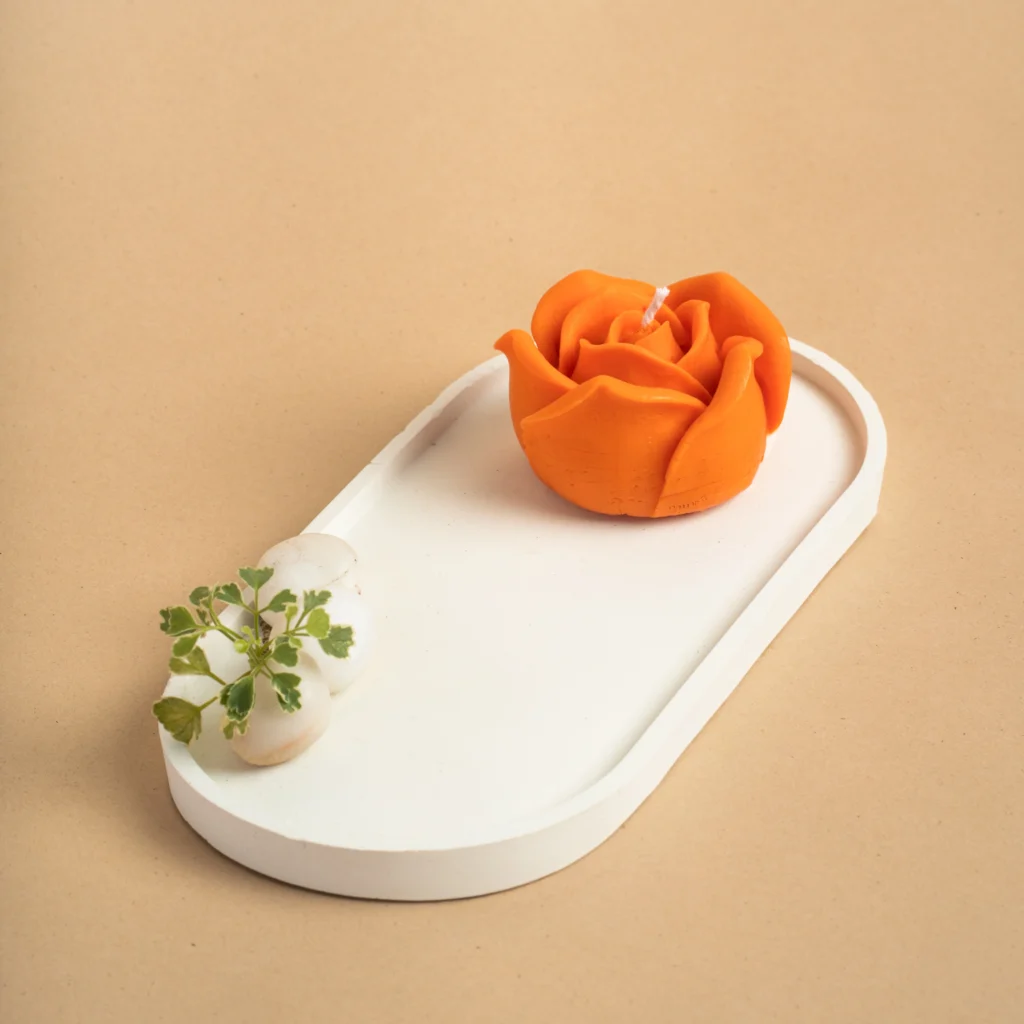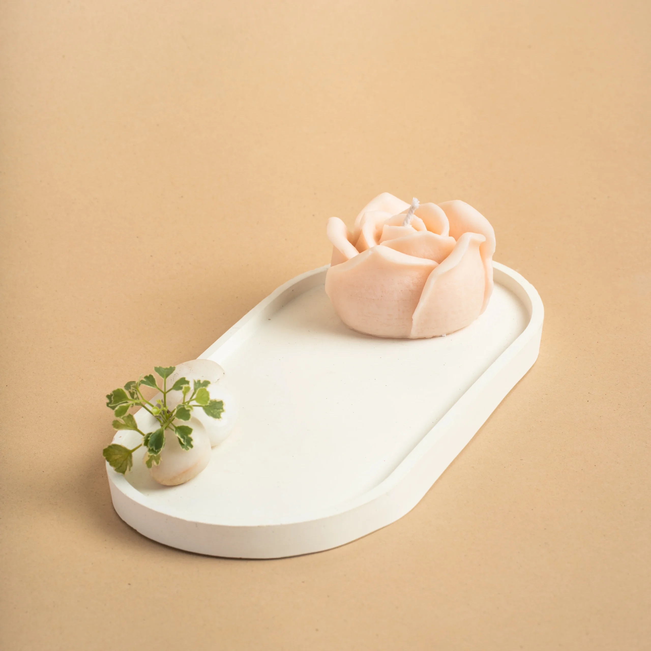 A delicately scented rose candle that fills the room with calm and floral freshness.